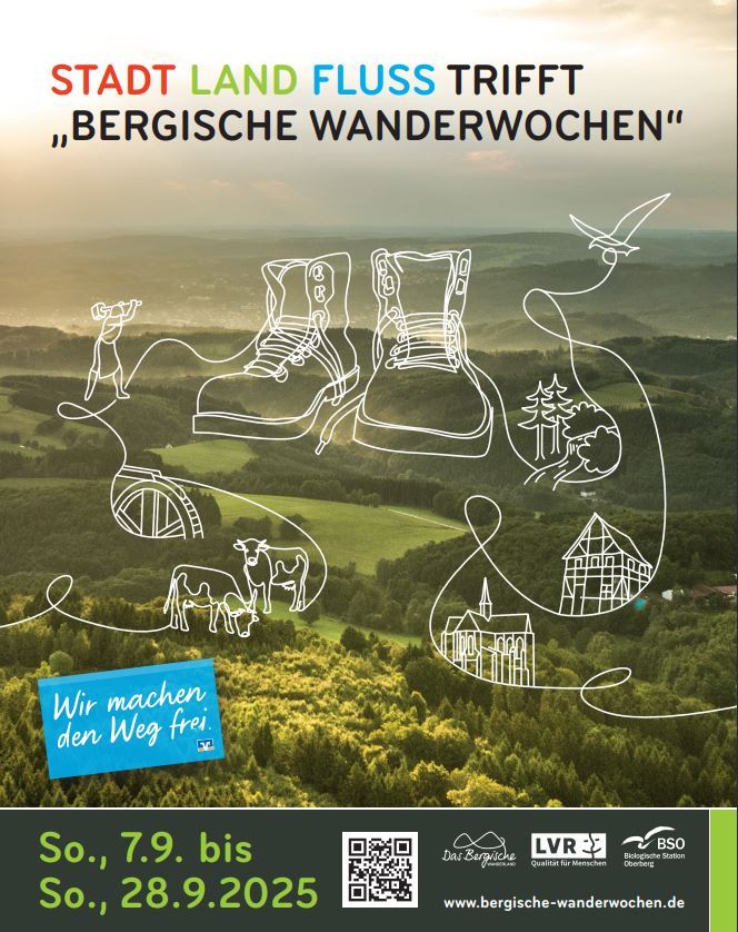 Mit dem „Bergischen Wandertag“ am Samstag, dem 6. September, startet „Das Bergische“ in die herbstliche Wandersaison. Einen Tag später, am Sonntag, beginnen dann die „Bergischen Wanderwochen“, die in diesem Jahr in Kooperation mit dem Landschaftsverband Rheinland (LVR) und der Biologischen Station Oberberg unter dem Titel „Stadt Land Fluss trifft Bergische Wanderwochen“ bis zum 28. September ein noch breiteres Programm bieten.
